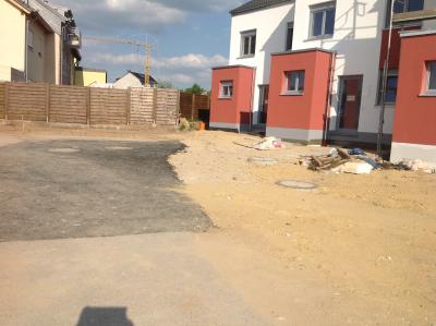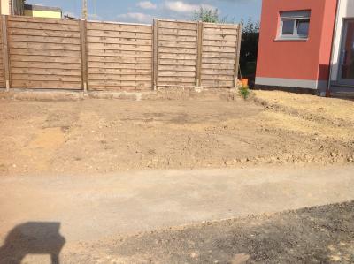 und der Platz für die Garagen ist auch schon geplättet, damit das Fundament kommen kann.